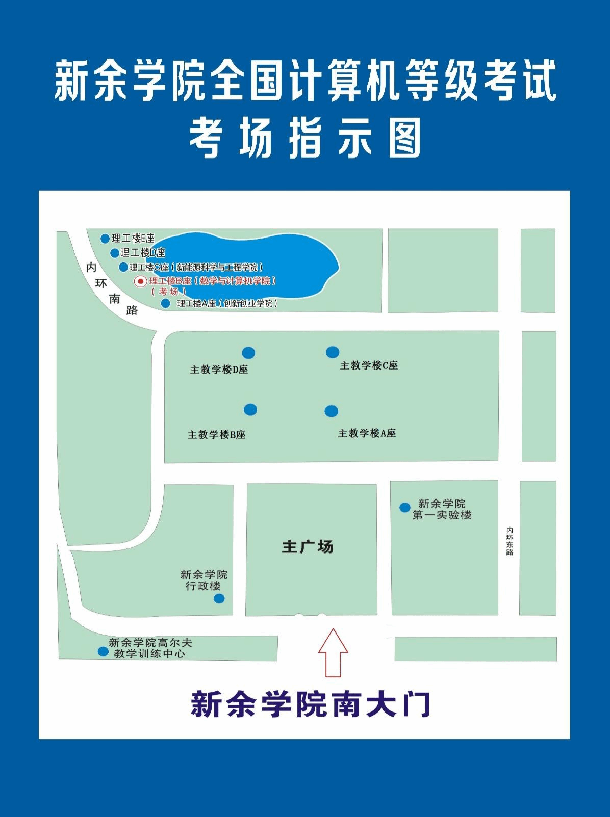 (注:考场位置位于内环南路右侧理工楼B座数学与计算机学院,理工楼B座、C座的东侧副楼为候考室)